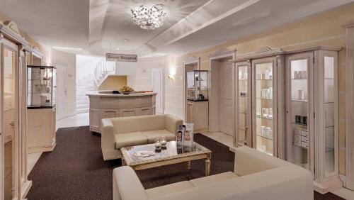 The spa area at Hotel Almesberger consists of 2 parts. The Aquaris features indoor and outdoor pools, saunas, steam baths, laconiums, tepidariums, and relaxation rooms. The Volcano features a “volcanic” sauna, a tepidarium, an ice fountain, relaxation rooms, and a large outdoor adventure pool with a whitewater canal.