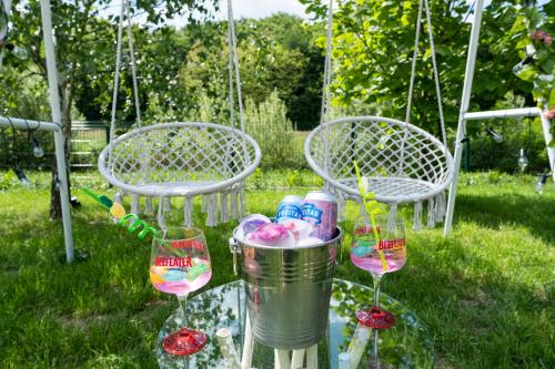 The villa is located on the ground floor and features 2 bedrooms, a flat-screen TV with streaming services and a fully equipped kitchen that provides guests with an oven, a fridge, a washing machine, a stovetop and kitchenware. A private entrance leads guests into the villa, where they can enjoy some wine or champagne and chocolates or cookies. There is also a seating area and a fireplace.