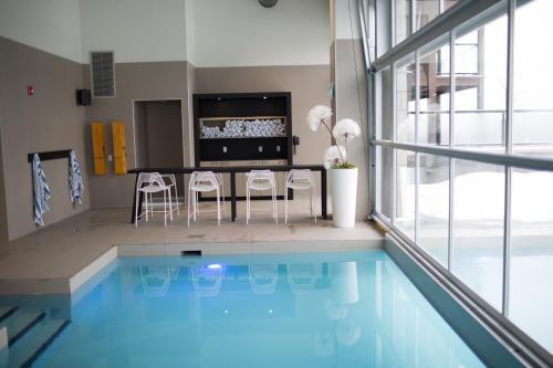 Guests also have free access to the hotel’s fitness room, swimming pool and hot tub, as well as the private home theatre, games room and lounge. Free outdoor parking available, and indoor heated parking is also available with extra fees.