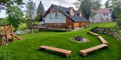 Featuring a sauna, Chalupa Granát is located in Kořenov. This property offers access to a terrace, a pool table, free private parking and free WiFi. Guests can make use of the outdoor fireplace or the children's playground, or enjoy views of the mountain and garden.