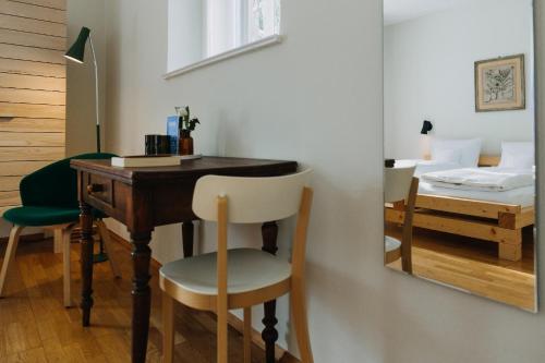 The double room features heating, as well as a private bathroom boasting a shower. The double room is furnished with a desk and a seating area and offers a wardrobe, parquet floors and garden views. The unit has 1 bed.