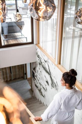 Breakfast buffet includes cold cuts, cheese, different types of bread, cereals, yogurt, fruit, juices, and homemade cakes and jams, and during summer it is served on the terrace. The restaurant is open for lunch and dinner, and is also open to the public. It specialises in traditional dishes of South Tyrolean and classic Italian cuisine, and special dietary meals are prepared on request.
