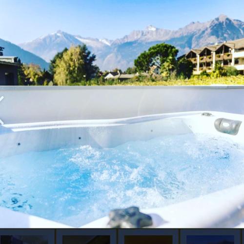 Set in Merano, Chalet Merangardenvilla offers a balcony with pool and garden views, as well as a seasonal outdoor pool, sauna and hot tub. This chalet offers free private parking, free shuttle service and free WiFi. Outdoor seating is also available at the chalet.