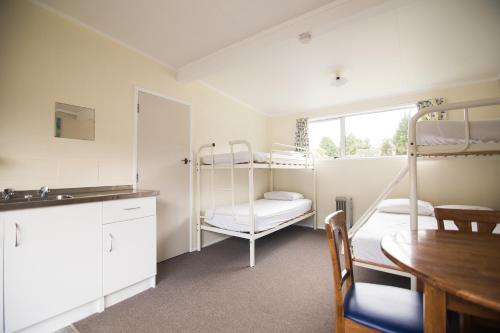 These studio cabins are located near the communal bathroom facilities. They are are equipped with a heater, sink, refrigerator, kettle, crockery, cutlery and both a table and chairs. These cabins have either a duo bunk (double bed on the bottom and a single bunk bed on the top) or a queen-sized bed, depending on occupancy. You can request your preferred bedding configuration in the Special Requests Box at the time of booking. Please note that the bedding configuration is not guaranteed and will be confirmed upon arrival, subject to availability. Beds are made up with a bottom sheet, pillow and pillow case. Guests can either bring their own bedding and towels, or hire them at the property for NZD $5 per bed, per night.