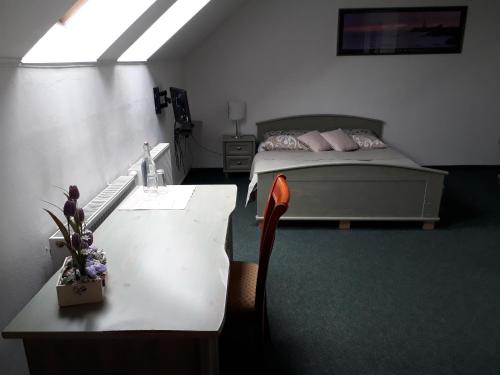 The spacious triple room offers a wardrobe, a carpeted floor, as well as a private bathroom featuring a shower and a hairdryer. This triple room features heating and a flat-screen TV with satellite channels. The unit offers 4 beds.