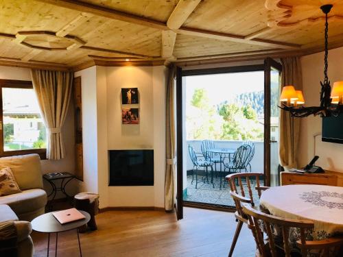 The spacious apartment features 2 bedrooms, 1 bathroom, bed linen, towels, a flat-screen TV with satellite channels, a dining area, a fully equipped kitchen, and a terrace with mountain views. Guests can enjoy an ambient stay in their soundproof room with parquet floors and a fireplace. The property has an outdoor dining area.